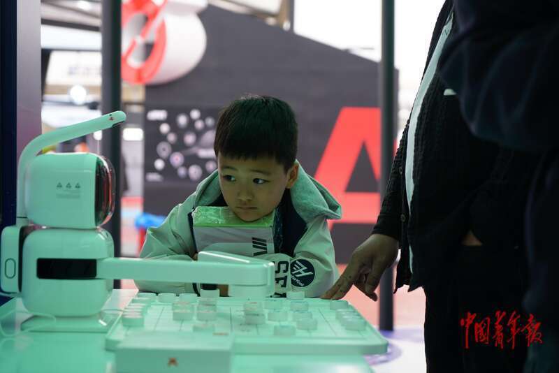 4月8日,北京亦庄,一个男孩儿在观看AI与人类下象棋。中青报·中青网记者 李强/摄