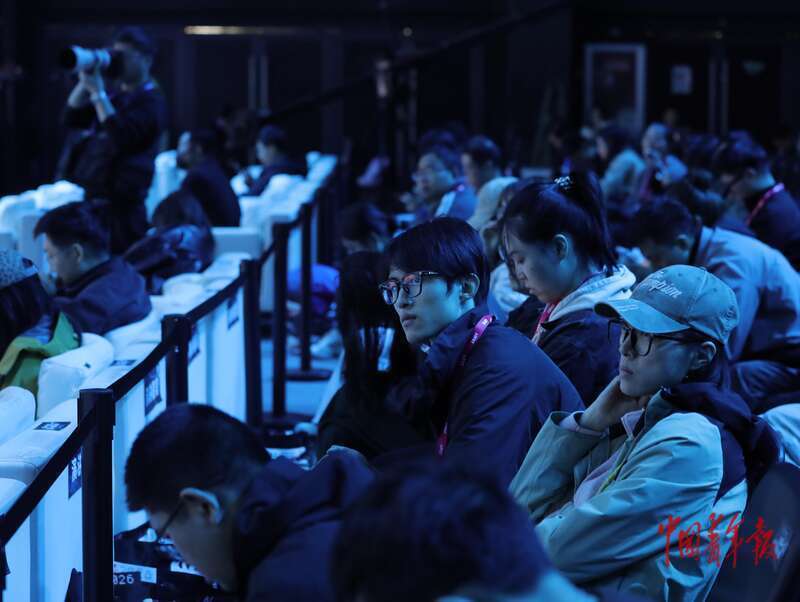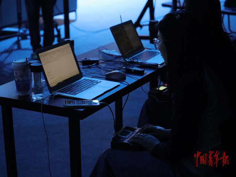 4月8日,北京亦庄,“AI未来大会”上的速记员正在工作。速记员被认为是受AI冲击严重的职业之一。中青报·中青网记者 李强/摄