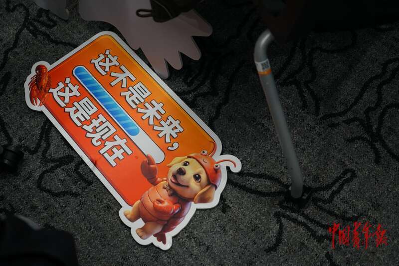 3月7日,北京朝阳,“龙虾进化大会”上,散落在地的标语牌上写着:“这不是未来,这是现在”。中青报·中青网记者 李强/摄