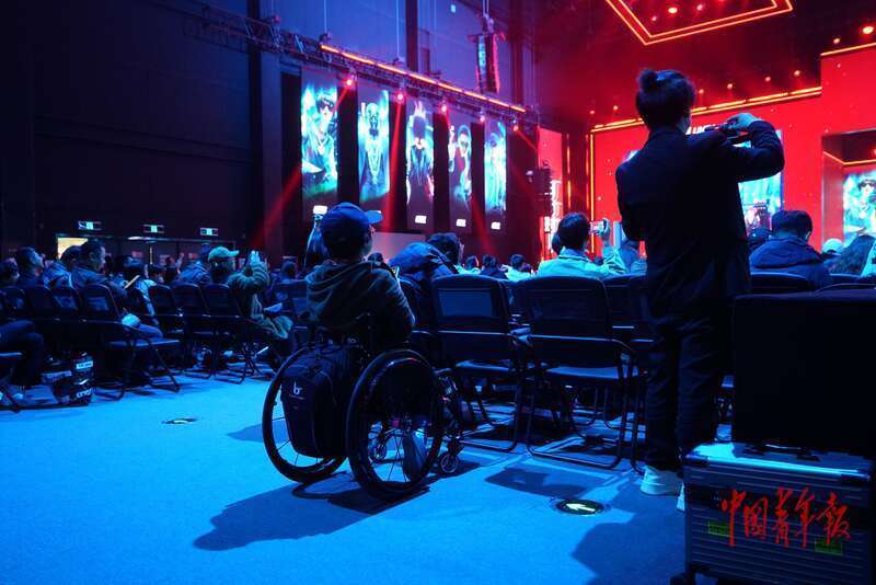 4月9日,北京亦庄,一名坐着轮椅的年轻人来到“AI未来大会”现场听会。中青报·中青网记者 李强/摄