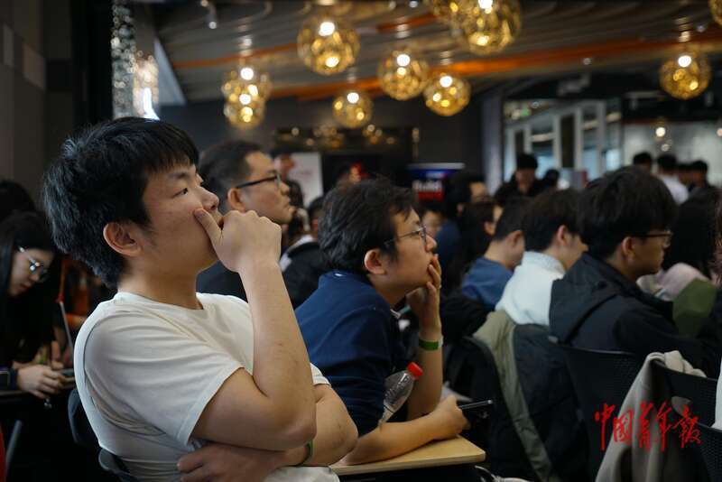 3月7日,北京朝阳,参加“龙虾进化大会”的年轻人听得入神。中青报·中青网记者 李强/摄