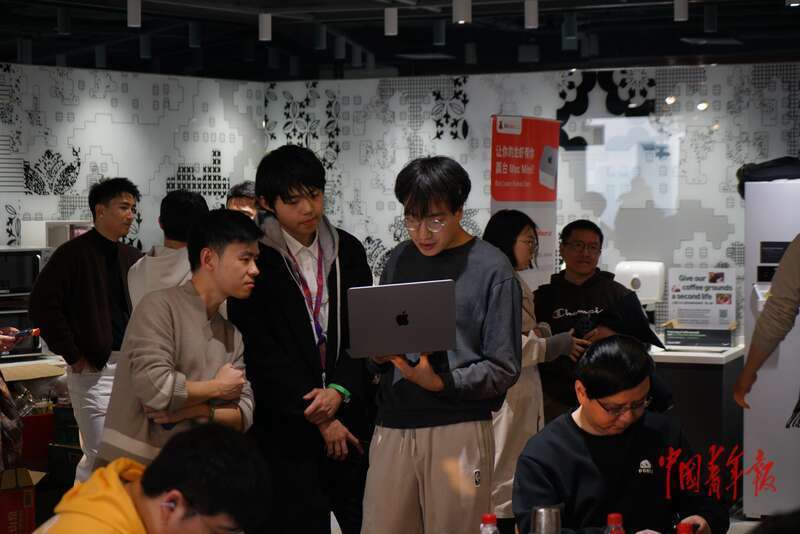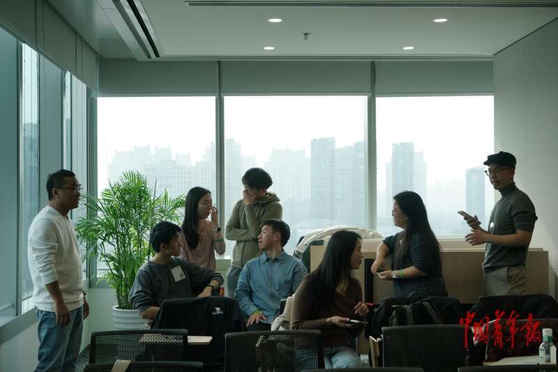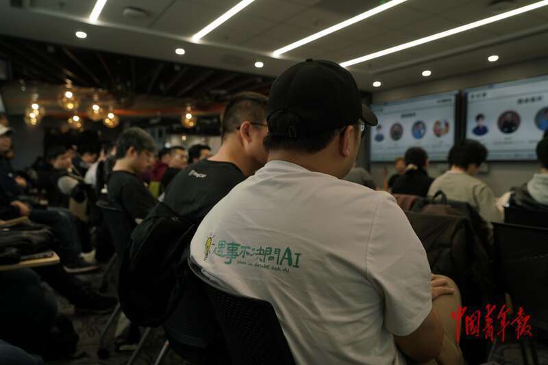 3月7日,北京朝阳,年轻人聚在一起讨论着自己利用AI创建的新项目。中青报·中青网记者 李强/摄