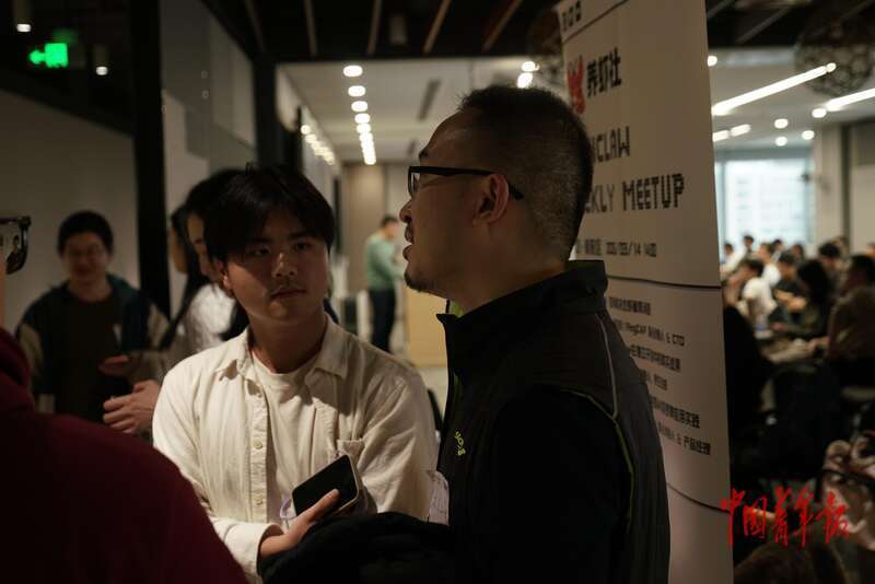 3月14日,北京朝阳,一场“龙虾大会”分享结束后,明势创投董事总经理徐之浩被年轻人拦住提问。明势创投是MiniMax(一家通用人工智能科技公司)最早的投资方之一。1月9日,MiniMax正式登陆港交所,成史上IPO规模最大的AI大模型公司。中青报·中青网记者 李强/摄